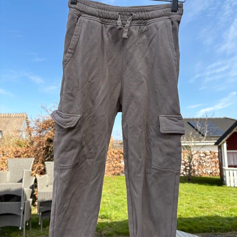 H&M bukser til dreng i str. 158. Bukserne er blå og fremstillet i bomuld. Modellen har elastik og snøre i taljen samt flere lommer i cargostil på siderne og bagpå. Velegnet som hverdagsbukser til børn i den angivne størrelse.