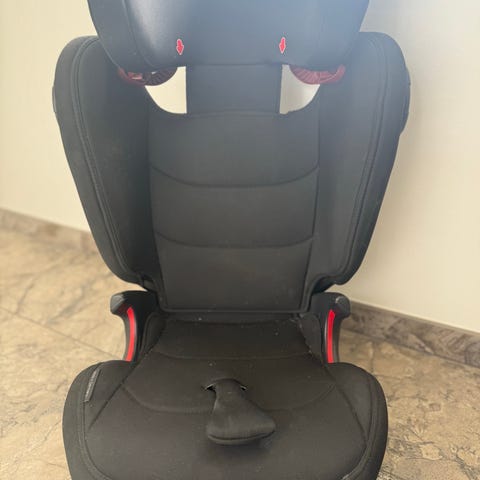 Ældre autostol. Stolen fremstår rengjort, betræk, hynder og seler er nyvasket. Der er ekstra baby indsat med, denne kan tages ud når baby bliver lidt større.