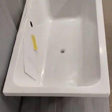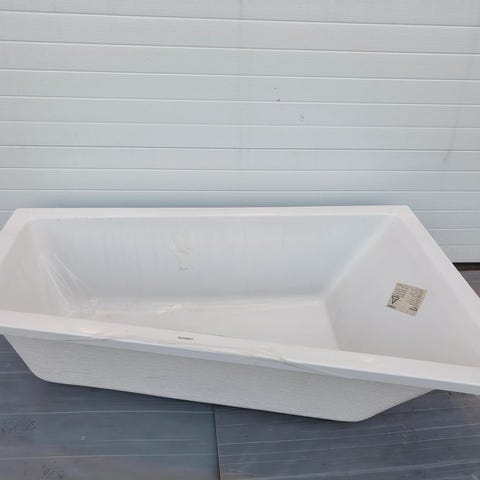 Fritstående rund hvid Duravit badekar med akrylpanel ,Ø 140 cm, højde 63 cm / Indvendig kar dybde: 50 cm.