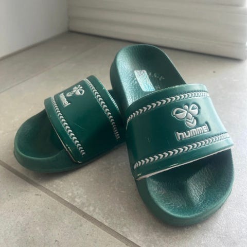 Hummel badesandaler til børn, unisex, i størrelse 37. Sandalerne er i grå farve og fremstillet i syntetisk materiale med formstøbt sål og rillet mønster for bedre fodfæste. Åben tå og bred rem over foden. Velegnet som badesandaler, til svømmehal, strand eller som lette hjemmesandaler.