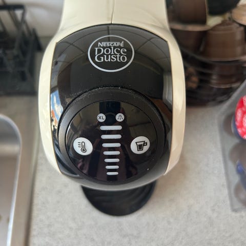 Dolce Gusto kapsel kaffemaskine i hvid og sort.