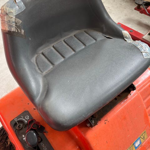 Husqvarna HS452AE motor. Har kun kørt en sæson, men kunne åbenbart ikke holde til vores bakker. Den fungerer stadig, men kører ujævnt. Vi har en video fra før den blev skiftet på havetraktoren.