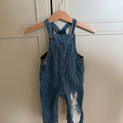 Denim smækbukser / overalls med kanin, H&M, str. 68 (4-6 mdr)
