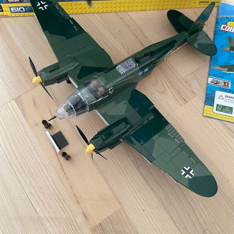 Cobi militær kanon byggesæt i grønne nuancer. Sættet består af en kanon på hjul, en mindre vogn og en soldaterfigur, som kan samles af klodser. Leveres med original æske vist på billederne. Velegnet til leg og opbygning af militærscenarier med klodser, der er kompatible med andre kendte klodssystemer i tilsvarende størrelse.