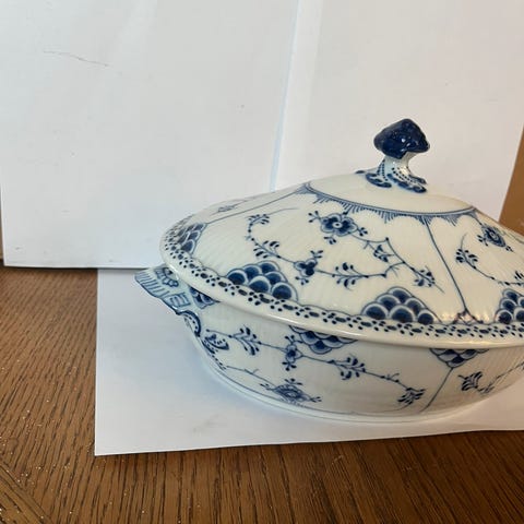 Stor smuk svejfet terrin med ører, uden låg.