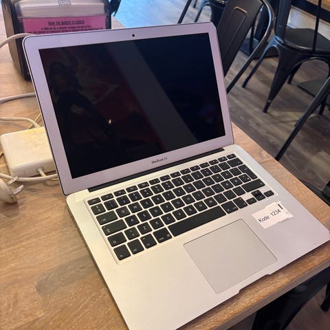 Apple MacBook Air 13" bærbar computer i sølvfarvet aluminium. Skærmstørrelse ca. 13 tommer. Tastatur med pegefelt under skærmen. Kører macOS OS X El Capitan ifølge skærmbilledet. Velegnet til almindelige computeropgaver som internet, tekstbehandling og medieafspilning. Fysisk design i tyndt og let kabinet, som gør den egnet til mobil brug og transport i taske eller rygsæk.