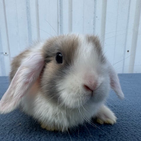 Smuk Isabella wiener blåøjet satin mini lop hunkanin, søger ny familie og er klar nu.
