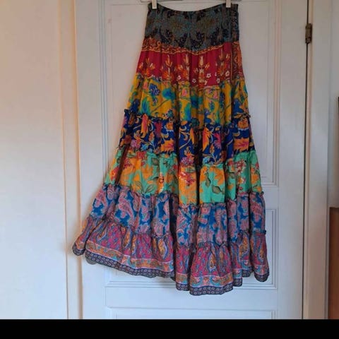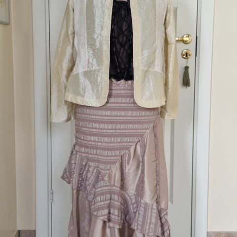 Fint unika sæt. Syet af vintage bomulds stof. Top med bindebånd og bukser med elastik i taljen og ved fod.