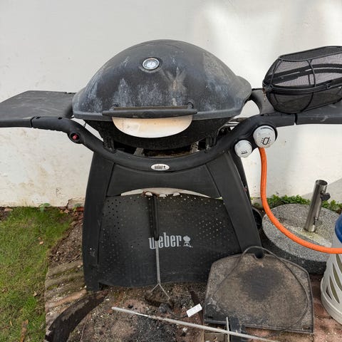 Weber Q gasgrill med stativ i sort. Kompakt grill med låg og grillrist i støbejern samt integreret vogn med hjul for nem flytning. Velegnet til terrasse, altan eller mindre udendørsarealer, hvor der ønskes en pladsbesparende el grill