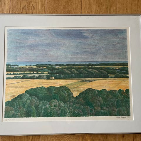 Lars Swane litografi, landskabsmotiv billede med ramme