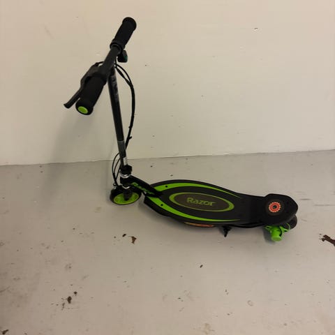 Razor PowerCore E90 el-løbehjul i sort med grønne detaljer. Modellen har elektrisk motor integreret i baghjulet og er udstyret med små hjul, egnet til kørsel på jævnt underlag. Styret har skumhåndtag, og der er fodplade med skridsikker overflade. El-løbehjulet er velegnet til børn, afhængigt af højde og vægtgrænse angivet af producenten. Kan bruges til kortere ture og leg på veje, stier eller gårdmiljøer, hvor el-løbehjul er tilladt.