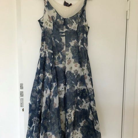Længde ca 88 cm fra skulder til underkant af kjolen.