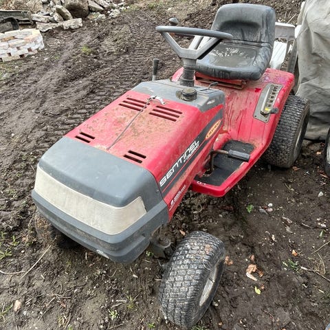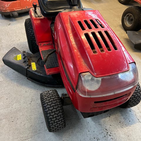 Murry havetraktor i rød farve. Modellen er en mindre havetraktor med førersæde, ratstyring og fire hjul. Motoren er placeret foran under motorhjelmen, og klippeaggregatet er monteret under traktoren. Egnet til klipning af større græsarealer og generelt havearbejde, hvor der er behov for en havetraktor frem for en almindelig plæneklipper. Den har altid stået tørt og er løbende vedligeholdt med textyl og maling. Kan bringes for lidt ekstra.