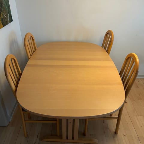 Stolene er ikke købt med bordet og har derfor ikke samme ben (model Havndal fra Jysk).