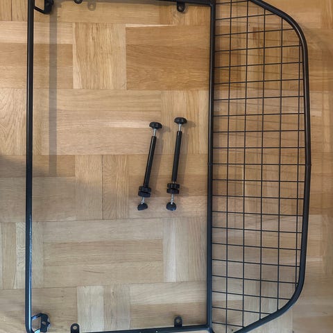 Hundegitter til bil bagagerum i metal - passer til Volvo V60 2018->. Gitteret monteres i bagagerummet og fungerer som afskærmning mellem hund og kabine. Velegnet til transport af hund i bilen og kan tilpasses bagagerummets form. Komplet sæt med hundegitter, rumdeler og låge. Fremstillet i metal med netkonstruktion, som giver god udsigt og ventilation for hunden. Super kvalitet og nemt at montere og demontere.