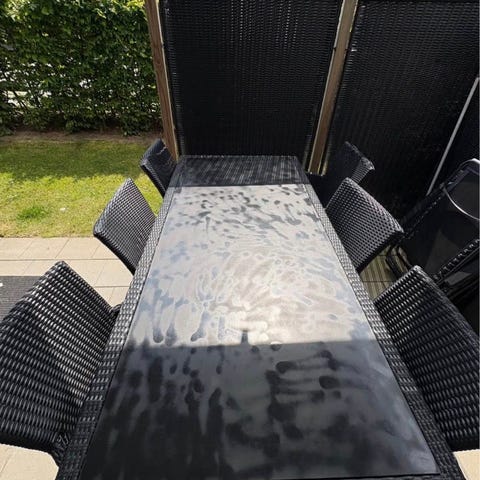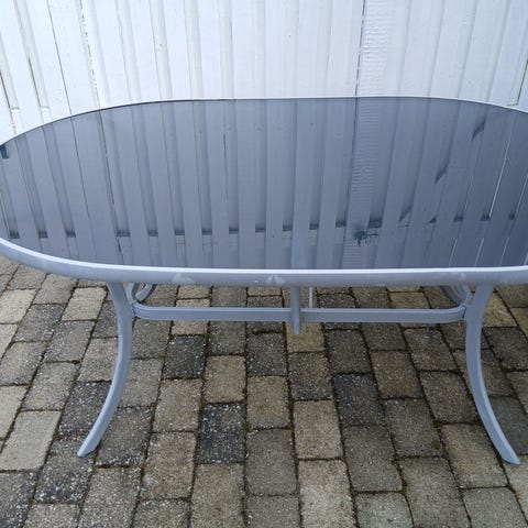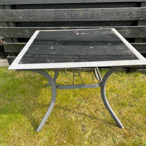 Havebord med sort glas plade og hylde