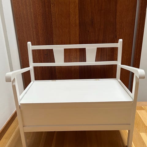 Smukt møbel med god plads til opbevaring. Bænken er brugt, men kan let komme til at fremstå i god stand, hvis den slibes.