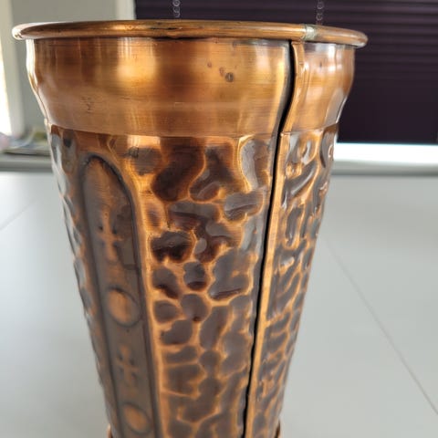 Krus i kobber. Vase.