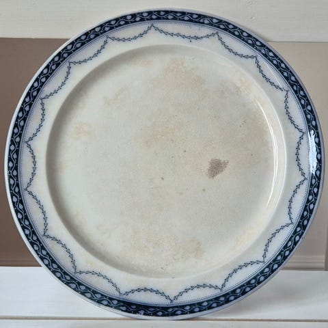 Gammelt tinfad, rokoko , kranstallerken med reliefkant , tungt 494 g