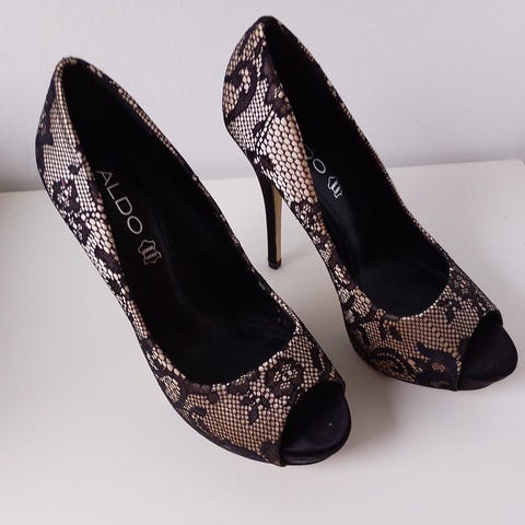 ALDO festsko højhælede sorte med sølvfarvede sten.