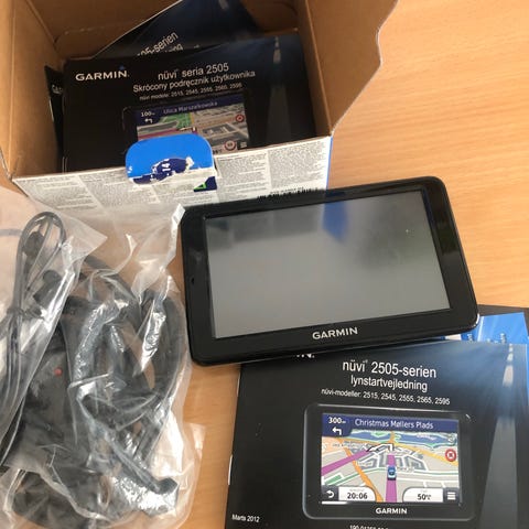 Garmin nüvi 2569 LMT-D GPS navigation til bil med 5" farveskærm. Enheden leveres i original æske med strøm-/ladekabel og monteringsudstyr efter hvad der ses på billederne. Kortdækning omfatter Vesteuropa (Western Europe 24). Velegnet som fast navigation i personbil med rutevejledning og kortvisning på skærmen.