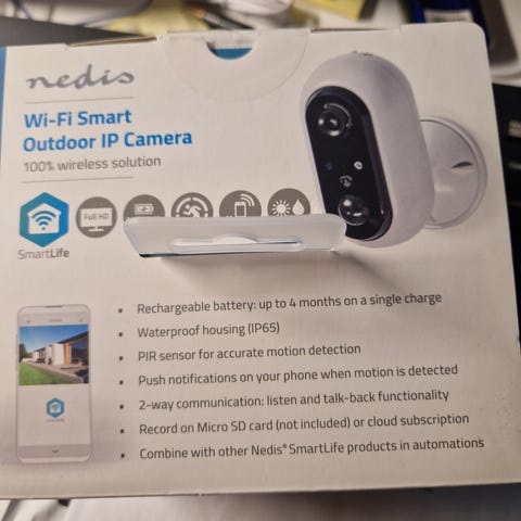 Nedis SmartLife udendørs vandtæt IP kamera i smart hvidt kugle design med 1080p HD opløsning.