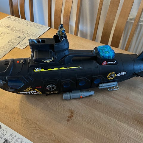Flot og velholdt helikopter med bil til. Kan lyse og sige lyde.