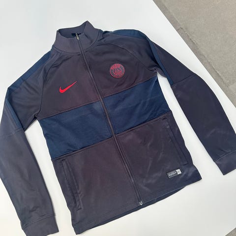 Nike PSG fodboldtrøje i børnestørrelse 158 (147–158 cm). Trøjen er langærmet og grøn med mønster og klublogo på brystet. Fremstillet i let, åndbart materiale egnet til fodbold og anden sport. Velegnet til børn i højdeintervallet 147–158 cm, til brug både til træning og fritid.