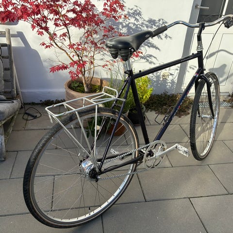 2-trins gear i nav, så gearskiftet ligger i pedalerne - hvilket gør den til en rigtig fed bycykel. Den kører som en drøm.