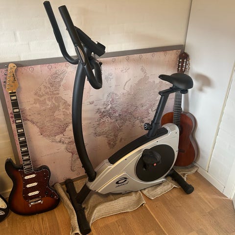 Abilica motionscykel egner sig til indendørs træning og konditionstræning. Cyklen har justerbart sæde og styr, så den kan tilpasses brugerens højde og siddestilling. Den er udstyret med svinghjul foran og remtræk, som giver jævn og stabil kørsel. Pedalerne har stropper for bedre fodfæste under træning. Velegnet til hjemmetræning og generel konditionstræning.