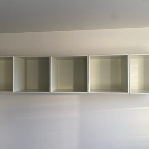 Væghængt bogkasse i hvid fra trævareforbrikkernes udsalg, model navn kubik. Reolen er kubeformet og egner sig til opbevaring af bøger, dekoration eller andre mindre genstande. Den monteres på væggen og giver et enkelt og funktionelt udtryk i rummet. Velegnet til brug i stue, kontor, soveværelse eller entré som ekstra opbevaringsplads eller udstillingshylde.