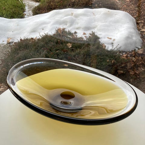 Den har to små ridser en udvendig og en indvendig, men ellers meget flot stand.