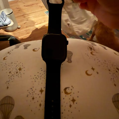 Købt 27-09-2024 i elgiganten. Kvittering, orig emballage, ladekabel, blå sportsrem og beskyttelses glas medfølger. Remmen har dog set lidt bedre dage.