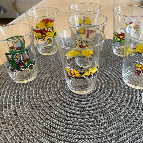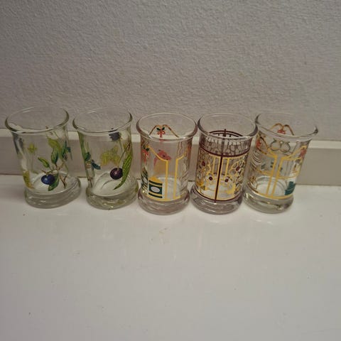 Stor samling af Reims glas fra 70’erne, kommer fra samler , meget velholdte uden skår og med minimalt slid.. De 20 største glas er alle forskellige motiver og står som nye. Så er der nogle cognac glas, og mindre glas i flere forskellige størrelser evt til en lille bitter, 3 askebægre og et par sideskåle. Store glas ca 20 cl. Zoom ind og se selv, og spørg hvis du mangler noget info om det annoncerede