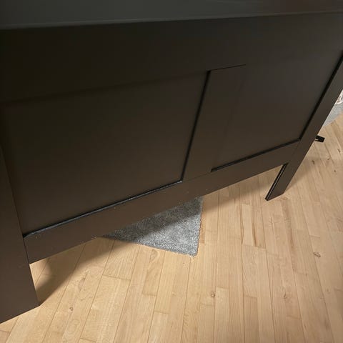 Sengegavl virker som en kommode med hylde på hjul der kan gemmes i sengeavl