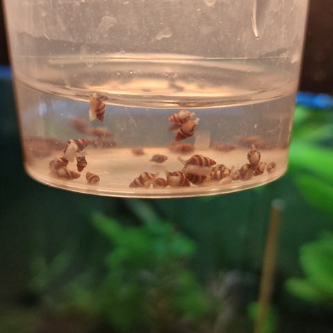 De er rovdyr snegler og derfor spiser andre snegler og fiskefoder rester.