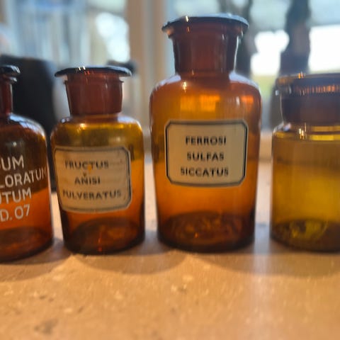Har også en meget stor samling på 7-15 af sjældne giftflasker i samme kobolt med stemplet “NOT TO BE TAKEN” mm