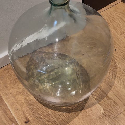 Smuk og stor vin ballon i glas, har selv brugt den til vase med store grene i … højde ca.56 cm og diameter ca. 33cm …