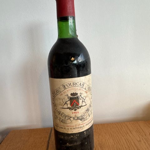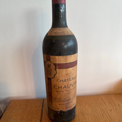 Schröder & Schÿler La Tour de By rødvin fra Bordeaux, årgang 1945. Flasken fremstår med original etiket og kapsel. Velegnet som samlerobjekt eller til dekoration. Indholdet er uåbnet, men kvaliteten af vinen kan ikke garanteres på grund af alder og opbevaringsforhold, som ikke fremgår af oplysningerne.