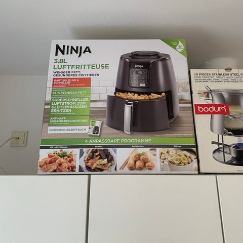 6 liters Ninja multicooker. Kan air fry, trykkoge og det hele.