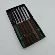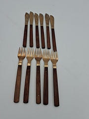 12 Lundtofte Eckhoff knive med stilfulde, mørke træhåndtag og rustfrit stålblad, perfekt til servering af smør og pålæg.