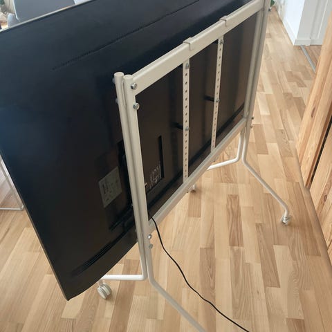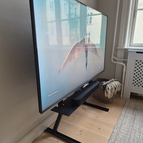 Obs der er skåret 6 cm af det originale mål da vores TV monteringshuller passede dårligt og stativet blev synligt bagved fjernsynet. Så derfor lyder højden 152cm