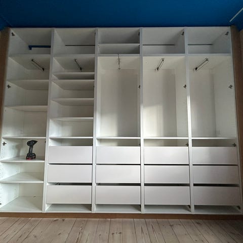 Vægbeslagene medfølger, bare ikke skinnen til at hænge dem på.