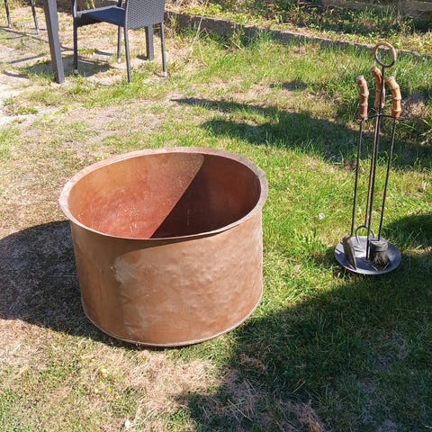 Ældre Kobberbalje. Flere mindre huller, men fin som brændekurv