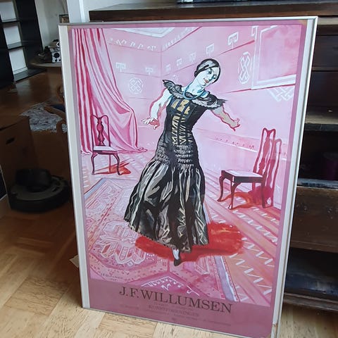 Plakat for Museet, J.F.Willumsen, motiv: Dame b: 40 h: 60, J .F. Willumsen Museums Udstillings plakat. Incl indrammet glas og sort ramme. 50 x 70 cm.