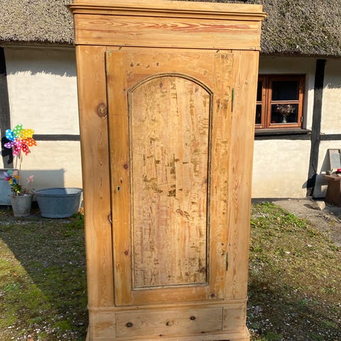 Fedt unikt grønt antikt almuekarlekammerskab. Det kan skilles fuldstændig ad, og er et rejse karlekammerskab. Det er perfekt til børneværelset, sommerhuset osv.