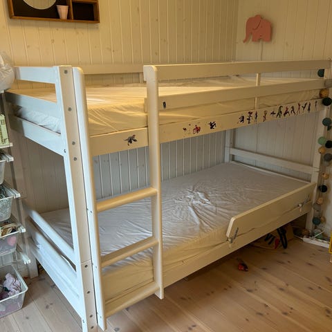 Køjeseng i lyst træ. Køjesengen har to liggepladser over hinanden og integreret stige i gavlen. Sengen er velegnet til børneværelse, hvor der er behov for to sovepladser på begrænset plads. Madras mål: 70x200 cm