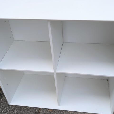70x70x40 Hvidmalet og alle rum kan ændres. Hul i ryggen er sted efter ophæng (se billede).