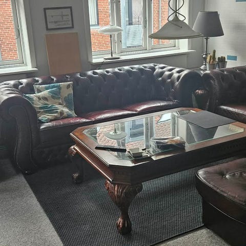 Sælger dette Chesterfield sæt. De er brugt og lappet på armlænene. De er stadigvæk behagelige at sidde i.