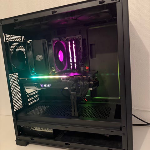 PC’en indeholder et AMD Radeon RX 6700 XT 12GB grafikkort, yder ca imellem NVIDIA RTX 3060 TI og et RTX 3070. Det er Red Devil modellen fra Powercolor, hvilket er en af de bedste modeller. Den indeholder den super effektive Ryzen 7 5700x CPU med 8 kerner. Den har en opgraderet CPU køler så den kører køligere og mere stille end med standard køleren. Den indeholder en lynhurtig NVME SSD på 1TB så den starter hurtigt op og kører smooth, og burde have plads til en del spil. Den har 16GB ram på 3600mhz i Dual Channel så man får mest ud af sin CPU. Lyset i blæserne kan ændres via en knap på kabinettet. Lyset i grafikkortet og motherboardet kan ændres via software. Den sælges med Windows 11 installeret og aktiveret, alle opdateringer til Windows er installeret, ligeså med de nyeste drivere til grafikkortet.